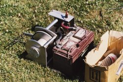 Planes are launched at the field using either a high-start or a winch The high starts are typically used with the smaller trainer planes since it offers simplicity. The high-start is simply surgical rubber tubing attached to line and staked to the ground at one end. The line is stretched and attached to the plane were it is then towed up to several hundred feet in the same manner as a kite. The winch can be used with all planes but requires some experience since it has the capability of pulling your plane very fast and hard (i.e. apart -- you can break planes on a winch). The winch is usually a car starter motor with a drum attached to the shaft. Braided fishing line is wound on the drum, the line going down the field, through a pulley (called a turnaround) and then brought back to the starting point where its attached to the plane. The winch is operated by a foot pedal that energizes the motor.